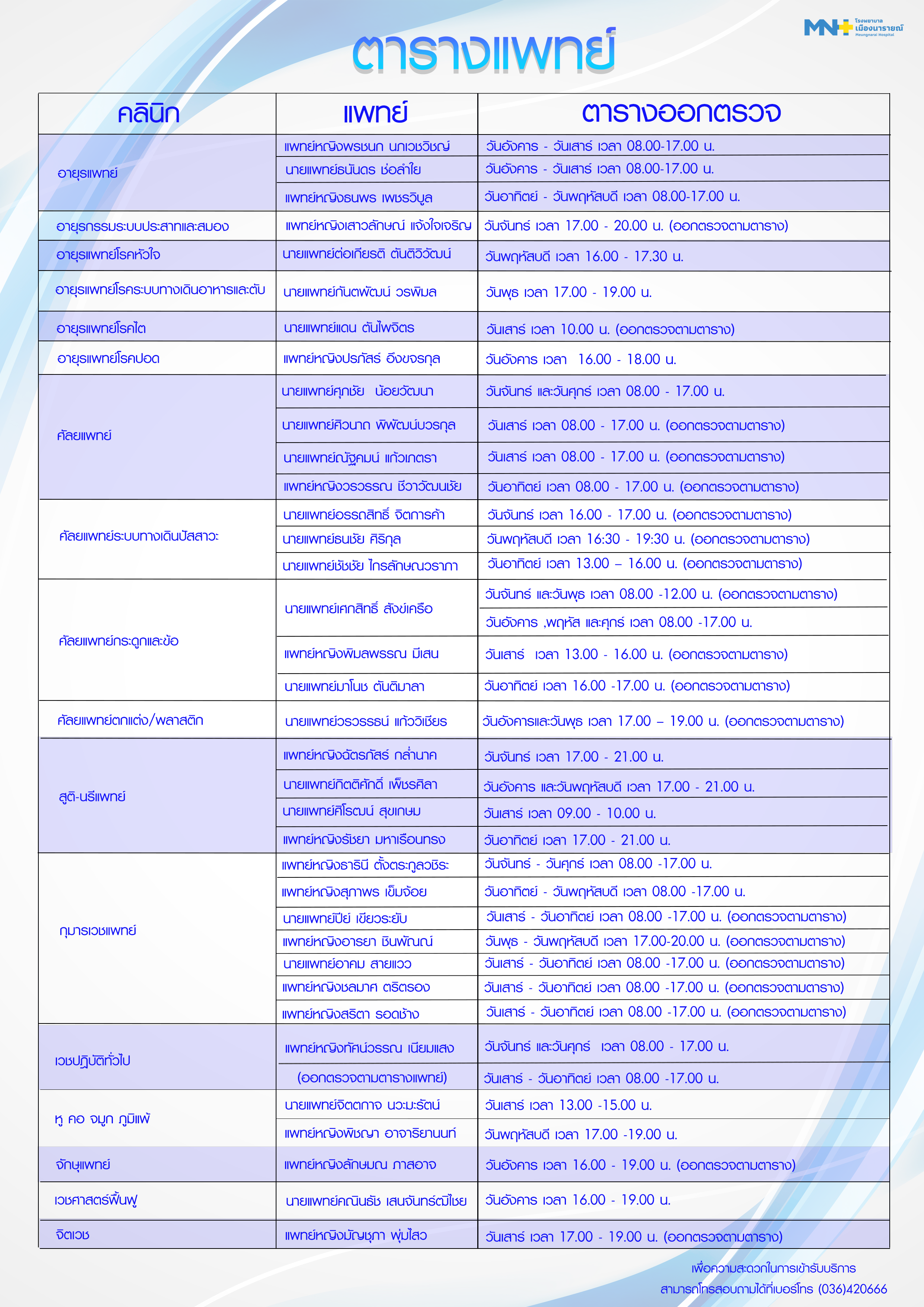 ตารางแพทย์