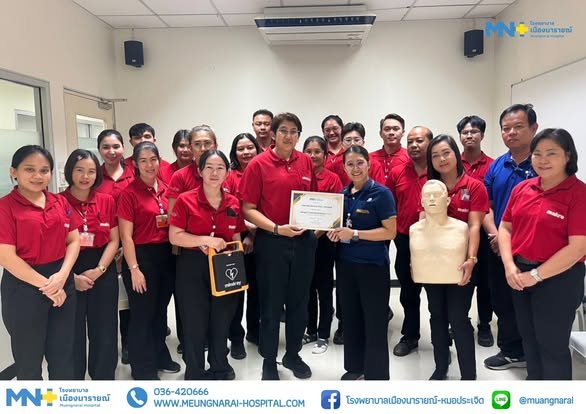 วันที่ 2 ตุลาคม 2568 โรงพยาบาลเมืองนารายณ์ จัดกิจกรรม 24 ปี MNH อบรม CPR 24 องค์กร เป็นการบรรยายและฝึกปฏิบัติการช่วยฟื้นคืนชีพ (CPR) ขั้นพื้นฐาน ณ บริษัท ซีพี แอ็กซ์ตร้า จำกัด (มหาชน) เพื่อให้ได้รับการเสริมสร้างทักษะที่ถูกต้อง พร้อมฝึกปฏิบัติในสถานการณ์จำลองและหุ่นจำลอง ให้ผู้เข้าร่วมสามารถนำความรู้ไปประยุกต์ใช้ได้อย่างมั่นใจและมีประสิทธิภาพ”